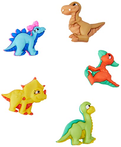 Dress It Up "Dino Mite Button in plastica, Multicolori, 23 x 19-27 x 22 mm, 5 Pezzi