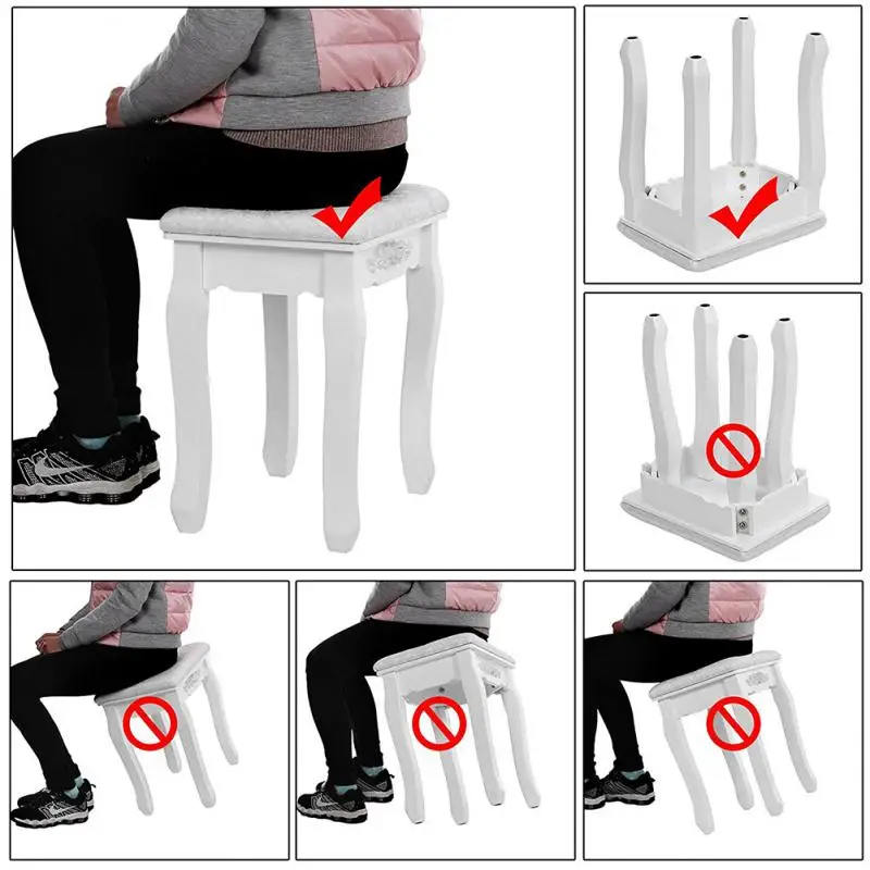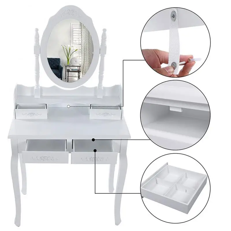 Dresser Table Set Mirror Dressers Makeup Adjustable 4 Drawers Rubber Wood European With Stool Bedroom Furniture White Big HWC