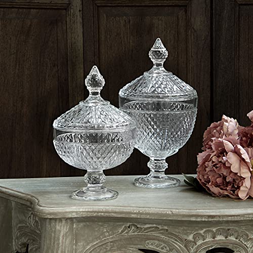 Dressing Home Contenitore Coppa Porta Bon Bon Vetro Trasparente con Disegni a Rilievo Vintage Shabby Chic Altezza 29 cm