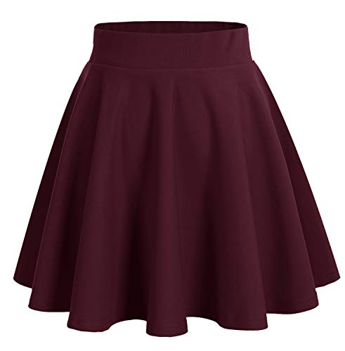 DRESSTELLS Gonna Corta Svasata Mini Gonna da Pattinatrice Versatile Elastica Solida Colore Gonna, Burgundy 2XL