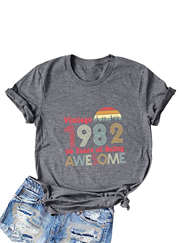 Dresswel Vintage 1982 40 Years of Being Awesome 40° compleanno 40° anni maglietta da donna girocollo manica corta, stile retrò, 1-grigio, S