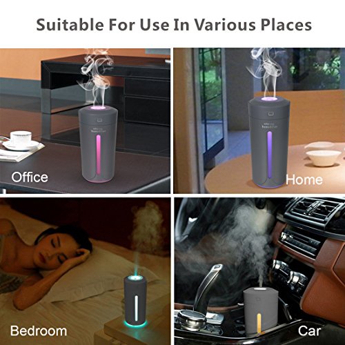 Dricar 230ml Umidificatore Ambiente Auto - Hmidificatore Ultrasuoni USB Silenzioso, 7 Colori LED, Purificare l'Aria e Migliorare l'Aria, Yoga, Auto, Soggiorno, Stanza per Bambini(Grigio)