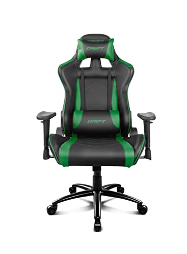 DRIFT Sedia da Gaming DR150BG -DR150BG- Sedia in semilpelle, Braccioli Regolabili 4D, pistone classe 4, basculable, altezza regolabile, schienale reclinabile, ccuscini lombari e cervicali, Nero/Verde