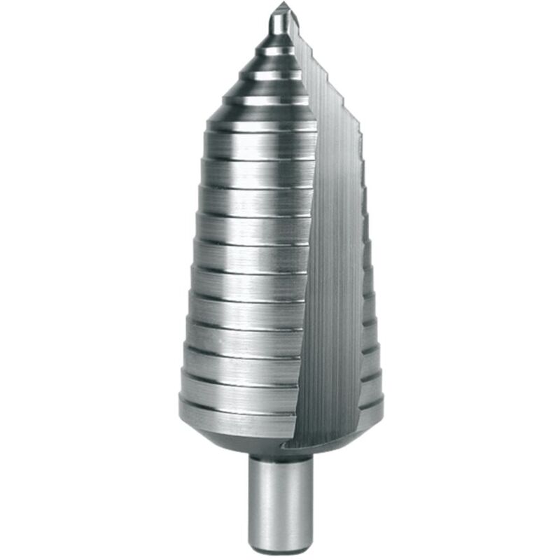 Dimensione n. 13. Area di perforazione 6.0-40,0 mm. Con questo strumento robusto, i fogli possono essere centrati, perforati, perforati e deburati in un solo passaggio. - La tensione profondamente macinata offre prestazioni di corsa assoluta e taglienti. In particolare, i chip non di rottura vengono rimossi in modo pulito come con un trapano a spirale. Ciò riduce la formazione di bandiere di costruzione e la saldatura fredda sul taglio. Il cono rende più facile ritirarsi con fogli forati.