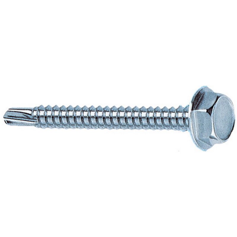 Autoperforanti. In Acciaio Speciale Con Zincatura Bianca. Adatte Per L Avvitamento Diretto Su Lamiere E Laminati Metallici Senza Preforo. Testa Esagonale Con Collare Piatto. Diametro 4.8 Mm Lunghezza 25 Mm.