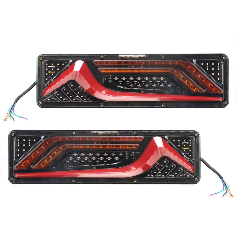 (Spessore LXWX) Tensione: 24 V Materiale: PC + metallo Colore luce: rosso/ambra/bianco. Funzioni: luce posteriore/freno, indicatore, luce di retromarcia.< br/>Quantità: Coppia (2 pezzi) Collegamento elettrico: Nero - Negativo Fanale posteriore verde Rosso - Luce freno Luce retromarcia< br/>Bianco Viola - Indicatore di direzione acceso fisso Giallo - Indicatore luminoso dinamico Blu- 11 LED rosso Caratteristica: Funziona con alimentazione a 24 V alimentazione. Impermeabile, resistente agli urti e alle vibrazioni, resistente ai raggi UV. Alta qualità e durevole, lunga durata e basso consumo energetico. Adatto alla maggior parte dei veicoli agricoli, camion, UTE, rimorchi, roulotte, camper, autobus, furgoni, ecc. La confezione include: 2 luci posteriori per