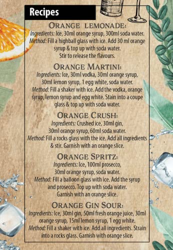 Selezione di ricette: ogni bottiglia di sciroppo d'arancia contiene cinque ricette facili da seguire compilate da mixologi internazionali.