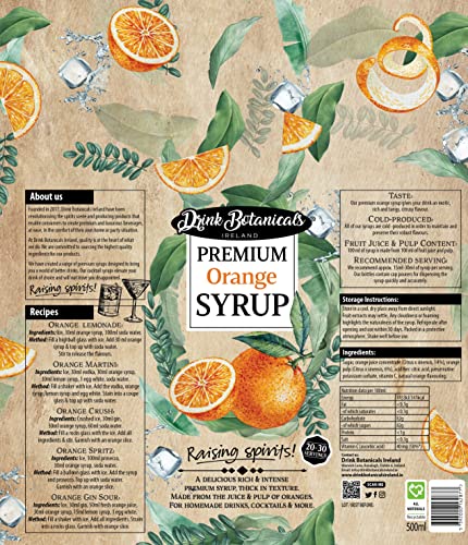 Drink Botanicals Ireland - Sciroppo d'arancia Premium a base di succo e polpa di arance, (bottiglia di vetro)