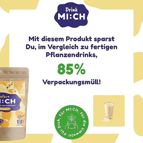 Drink MI:CH polvere di avena vaniglia 250 g polvere di avena da miscelare autonomamente, produce fino a 2 litri, 100% polvere vegana senza zuccheri aggiunti - 85% in meno di rifiuti di imballaggio -