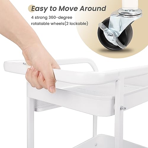 Dripex Carrello Portaoggetti su Ruote a 3 Ripiani in Metallo, Carrello Portaoggetti Mobile, per Cucina, Bagno, Ufficio, Lavanderia (Bianco)
