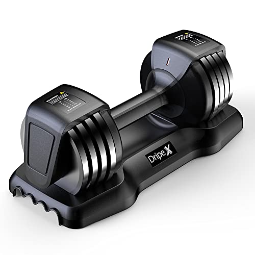 Set di manubri regolabili (1 x 25 lb/1 x 11, 34 kg): il sistema di manubri della marca Dripex sostituisce fino a 5 diversi manubri (per pezzo) e offre una regolazione individuale del peso. Impostazioni: 5, 10, 15, 20, 25LB. Regolazione del peso di allenamento desiderato tramite manopole girevoli. Il peso dell'allenamento può essere facilmente regolato da 3 a 15 lb (per manubrio). Design salvaspazio: lunghezza 46,5 cm, larghezza 24 cm, altezza 23 cm