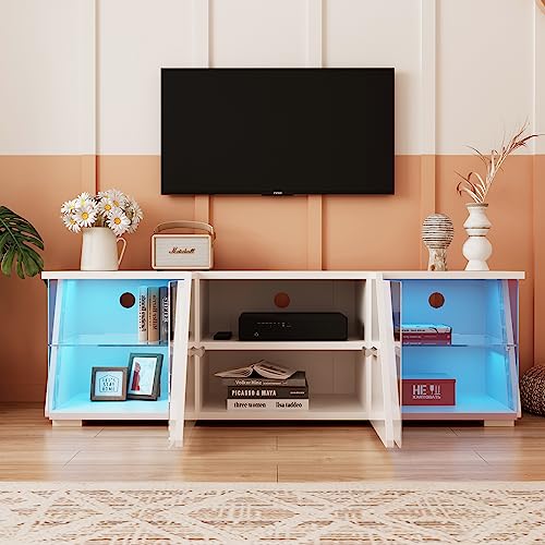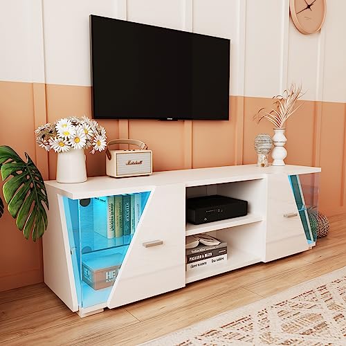 Dripex Mobile TV Mobile Porta Televisore con Illuminazione a LED, Bianco Lucido, 130 x 40 x 35 cm