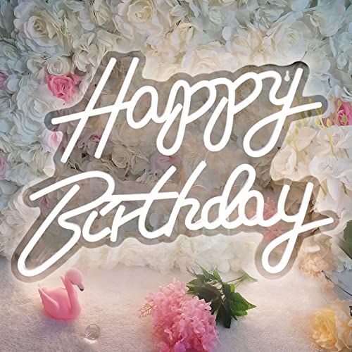 DriSubt Happy Birthday - Targa luminosa a LED, 16,53 x 11,81 pollici, con lettere "Happy Birthday", funzionamento USB, luce al neon, decorazione per feste di compleanno (bianco)