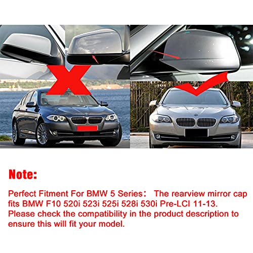 [Montaggio perfetto per la serie B-M-W 5] - Il cappuccio dello specchietto retrovisore si adatta a B-M-W F10 F11 520i 523i 525i 528i 530i 535i 550i Pre-LCI 2011-2013. Si prega di verificare la compatibilità nella descrizione del prodotto per assicurarsi che si adatti al proprio modello.