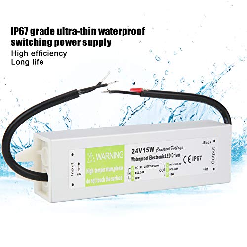 Driver LED, 15W impermeabile IP67 12V/24V DC Alimentatore LED Driver trasformatore Adattatore più sottile e durevole, tensione di ingresso CA 90-250 V(DC24V)