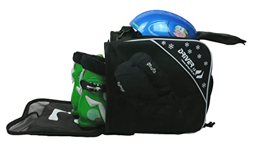 Driver13 ® Borsa per Scarponi da Sci per Bambini Borsa per Scarponi da Sci con Scomparto per Casco per Softboots Inliner Duro e Borsa per Scarponi Nera