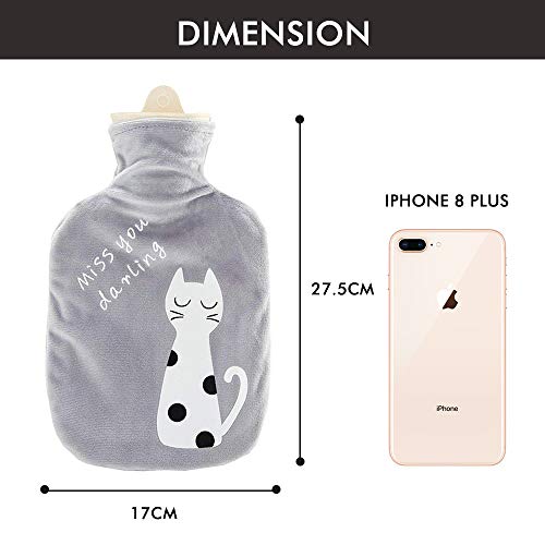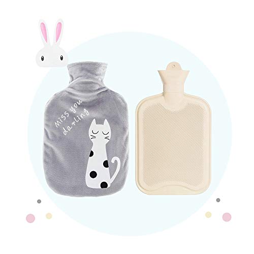 Drizzle Borsa dell'acqua calda Bottiglia di acqua calda peluche calore e comfort (Gatto grigio)