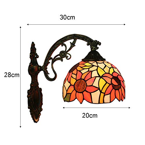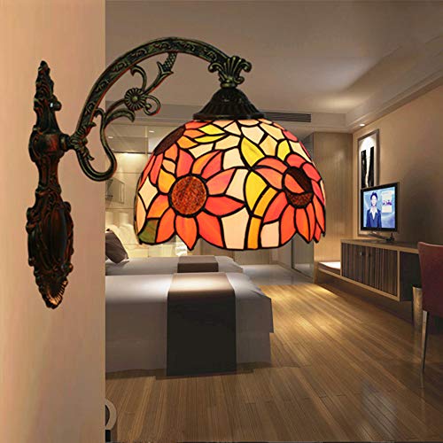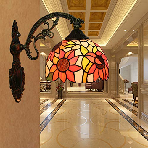 DROMEZ Applique da Parete Tiffany Interno, Lampada da Parete Vintage Vetro Colorato con Modello Girasole, Lampada a Muro Soggiorno Classico per Camera da Letto Corridoio, E27,A