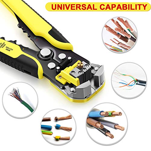 Prestazioni universali ganasce in acciaio al manganese Ha una super durezza (HRC36-42), adatto per il filo di speci 24-10 AWG (0,2-6,0 mm). Terminali isolati a crimpatura: Adatto per 22-10 AWG (0,2-6) mm. Morsetti non isolati: Adatto per 12-6 AWG (4-6,0 mm), 16-14 AWG (1,5-2,5 mm), 22-18 AWG (0,5-1,0 mm). Connettori di accensione a crimpo: Adatto per 7-8 mm.