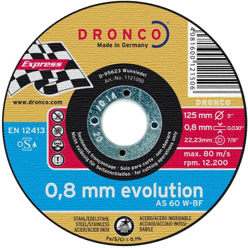 Dronco as60w-125 - disco de corte metal as 60 w inox evolution, 125 x 0,8 mm.