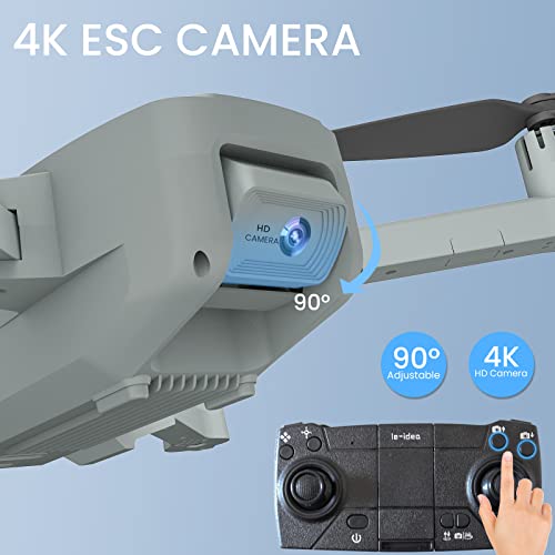 Drone con Fotocamera 4K, IDEA16 RC FPV Drones con 2 Telecamere Posizionamento del Flusso Ottico per Principianti, Pieghevole droni 720p camera inferiore, Quadrirotore WIFI 5 GHz 2 batteria
