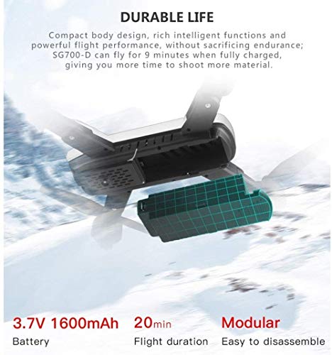 [Videocamera HD grandangolare 4K e 120 gradi e funzione FPV]: SG700-D La videocamera 4K HD consente di catturare video di alta qualità e foto aeree. Trasmissione di immagini ad alta velocità senza indugio, fornisce trasmissione video entro un raggio di 80 m, ogni immagine è 4K pixel, angolo di visione esteso di 120 gradi, registra ogni tuo momento meraviglioso, offre un'esperienza superiore.