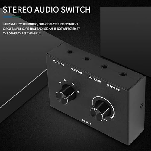 Dropfree Switch Audio a 4 Porte, Switcher Audio da 3,5 Mm, Selettore Audio Stereo AUX, 4 Ingressi 1 Uscita/1 Ingresso 4 Uscite Audio Switcher Box