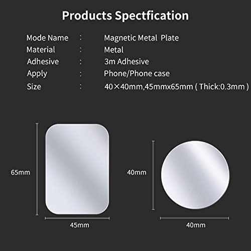 4 Pezzi Placche in Metallo (NON MAGNETICA): 2 Piastre Piatto rettangolare in metallo 4.5* 6.5 cm, 2 piastre metalliche adesive rotonda con diametro 4 cm. Le Placca Metallica non è magnetica, sono solo sostituzioni compatibili con supporti magnetici per auto. Nota Bene: La piastra metallica interferirebbe con la ricarica wireless. Rimuoverla prima di effettuare ricarica wireless.