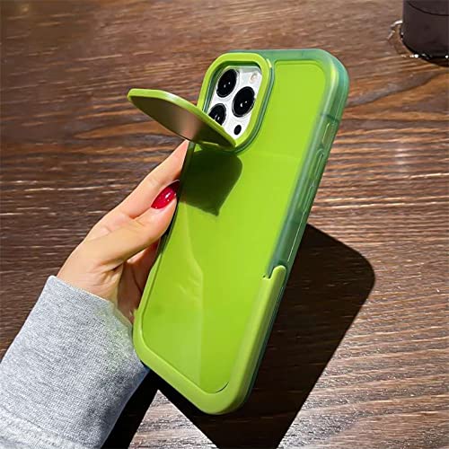 DRXVE Custodia per telefono con supporto pieghevole a specchio per iPhone 14 11 12 13 Pro Max 14Plus Cover trasparente per fotocamera chiusa in silicone, T6, per iPhone 13