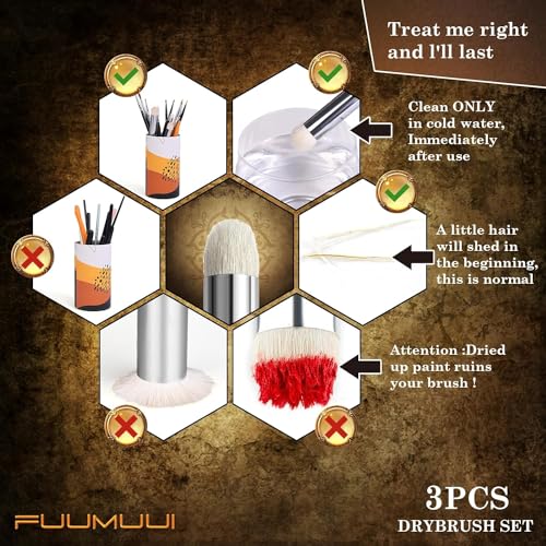 Drybrush Pennelli per Modellismo - 3 Pennelli Hobby per Giochi da Tavolo, Warhammer 40k, DND, Game Workshop, Pittura in Miniatura da Tavolo e Modello | Capelli di Capra Naturali, Pennelli Miniature