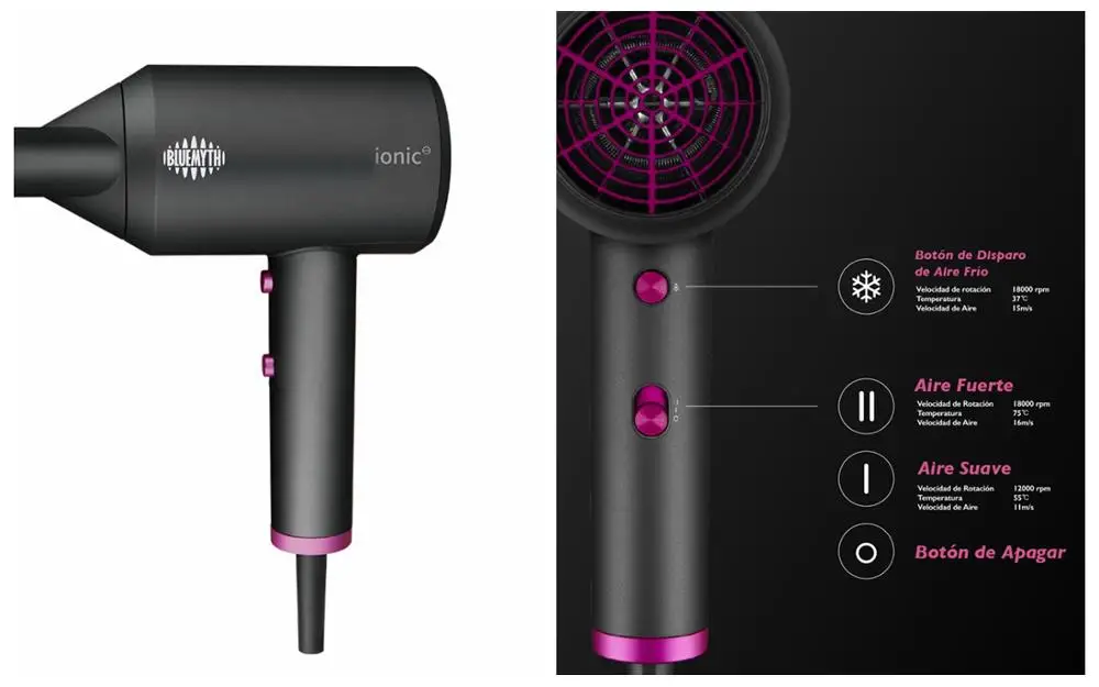 Hot and cold wind ion hair dryer professional negative ions portable hair dryer fast drying diffuser