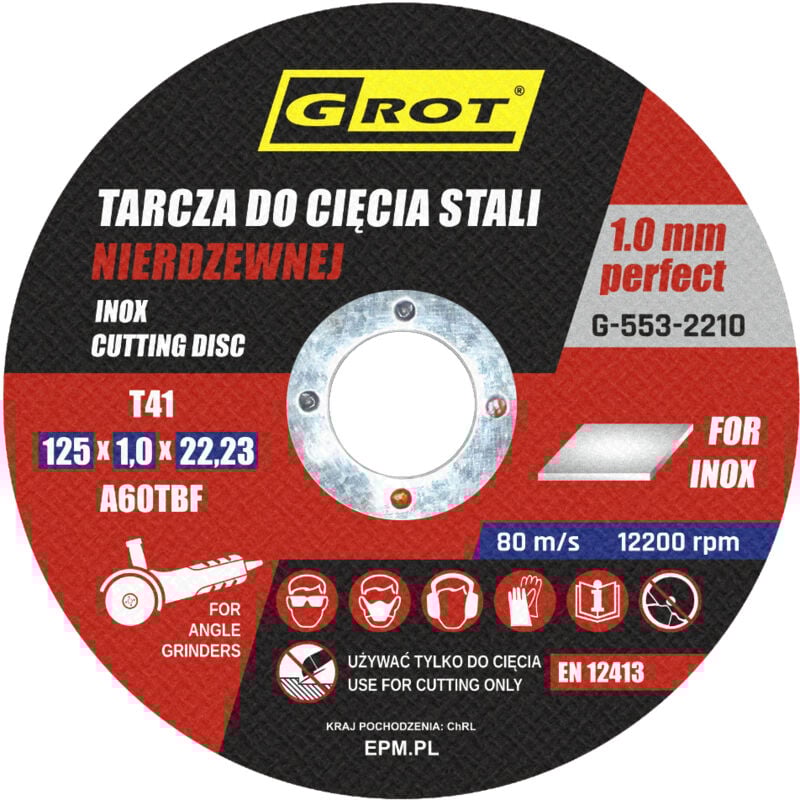 Dati tecnici: Set: 10 pezzi Dimensioni: 125 x 1.0 mm Forma disco: T41 Diametro foro interno: 22.23 mm Velocità massima: 12000 giri/min Velocità massima di lavoro: 80 m/s DISCO PIATTO INOX T1A 125*1.0*22 SET 10 pezzi PZ taglio disco per il taglio dell'acciaio INOX. Buone prestazioni di taglio e lunga durata del disco. Materiale abrasivo - corindone + WA (ossido di alluminio bianco), caratterizzato da durezza ed eccellenti proprietà lucidanti. Basso contenuto di ferro, zolfo e cloro (Fe+S+). Cl? Lo 0,1% limita la possibilità di contaminazione con questi composti di acciaio durante il taglio o la rettifica. Il prodotto è conforme alla norma europea EN 12413. Ricordarsi di non utilizzare le stesse rondelle per acciaio nero e acciaio inossidabile (es. acciaio inossidabile). poiché ciò può portare al trasferimento di contaminanti.**La foto è solo a scopo illustrativo.