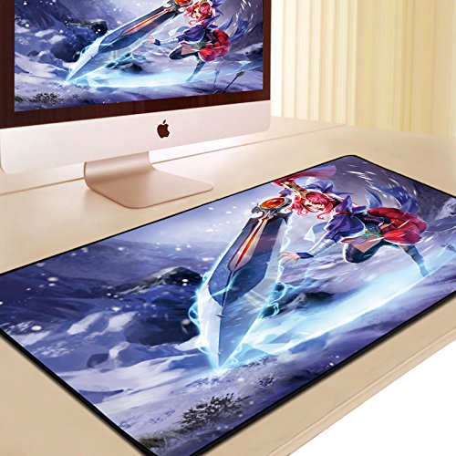 DS-L-L mouse pad elevato allungamento, denso e dolce anime giochi ufficio tastiera tabella,silver blue mulan 90 * 40 cm,900x400mm,3mm