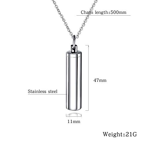 Dsanbo - Ciondolo a forma di cenere, a forma di cilindro in acciaio inox, colore argento