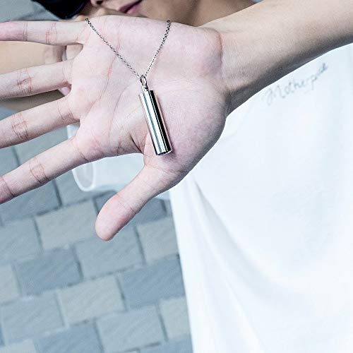 Ciondolo cilindrico di 47 mm di lunghezza, con una catena da 500 mm, adatto per uomini e donne.