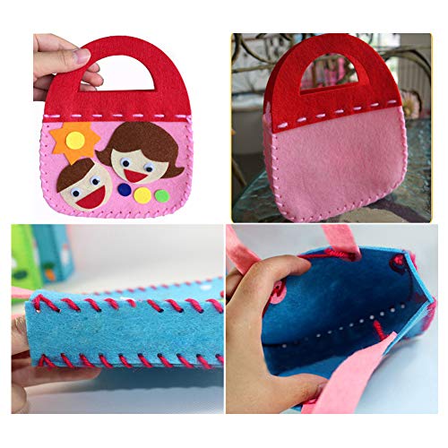 Dsaren Kit da Cucito Fai da Te per Bambini Gioco Cucito Bambina Mestieri Stoffa di Feltro Cucito Borsetta (4 pacchi)