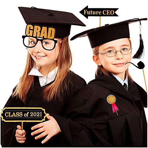 Dsaren 28 Pezzi 2021 Graduation Photo Booth Puntelli Luccichio DivertenteBaffi Labbra Rosse Farfallino Cappelli Laurea Decorazioni della Festa