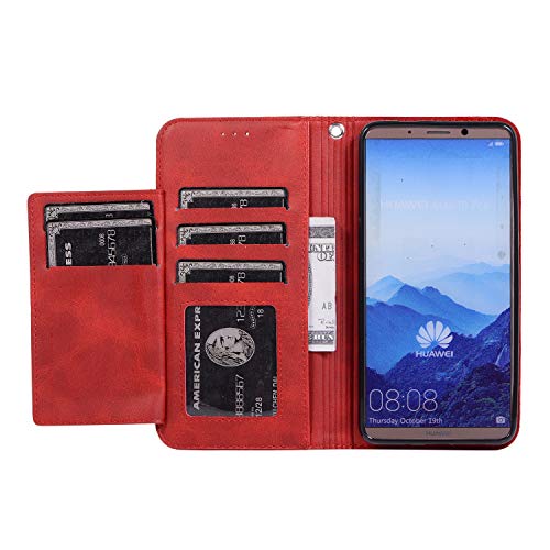 DShine Cover per Huawei Mate 10 PRO, Premium Pelle PU Cuoio Cerniera Portafoglio Flip Libro Custodia Protettiva Libro con 5 Slot per Schede e Chiusura Magnetica per Huawei Mate 10 PRO (Rosso)