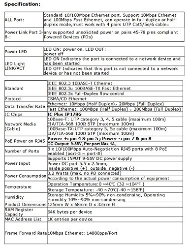 DSLRKIT 8 Ports 6 Poe Switch Injector Power Over Ethernet Without Power Adapter