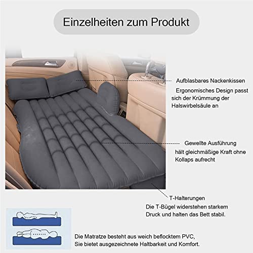 Dsplopk Materasso ad aria per auto, materasso gonfiabile, accessorio per auto, materasso ad aria, pompa ad aria e 2 accessori, escursioni, viaggi (nero)