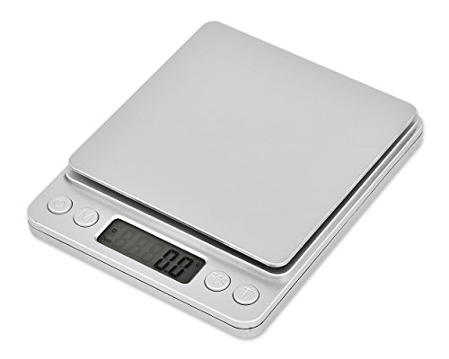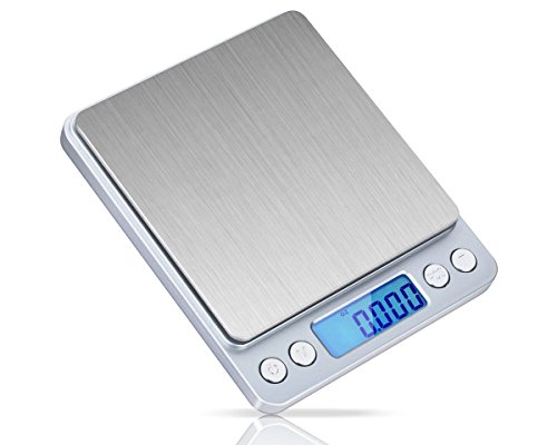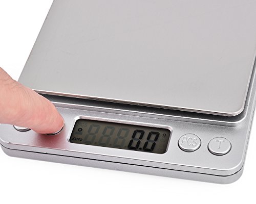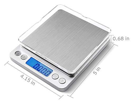 Questa Elettronica Bilancia Cucina di pesata è ottima per misurare i gioielli, la medicina, l'erbaccia e gli ingredienti di cottura con precisione raffinata 0.1g / 0.003 oz, gamma fino a 2000g / 70.55oz