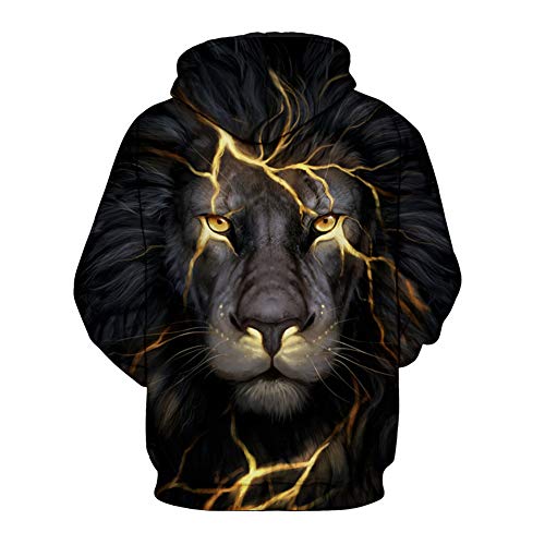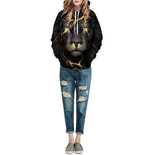 Dsstyles unisex a maniche lunghe con cappuccio 3D leone stampato felpa pullover tops Black Lion Large