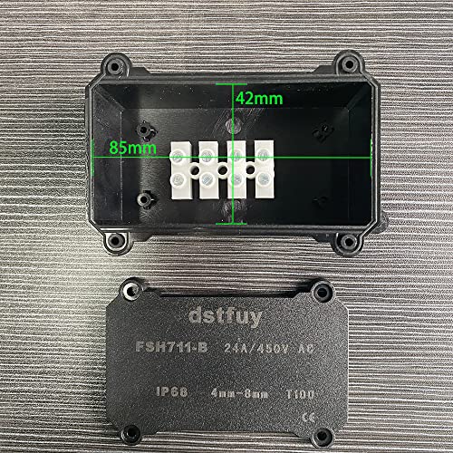Dstfuy Caja de conexiones,ABS IP68 Scatole elettriche impermeabili .con terminali a barriera da 24A Scatola di progetto di giunzione elettrica per cavi da 4-8 mm di diametro.(BOX711-B)