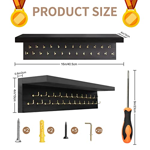25 ganci robusti: i 25 ganci in acciaio consentono di appendere più facilmente più medaglie e si possono facilmente estrarre. Scaffale con forte capacità portante può essere posizionato trofei o deodoranti per ambienti.