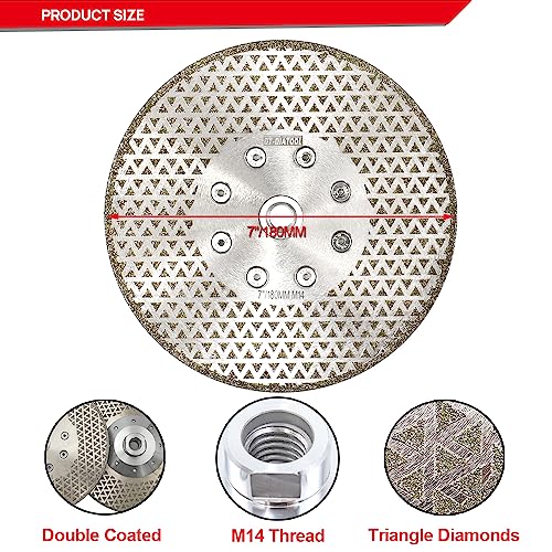DT-DIATOOL Disco Diamantato per Taglio e Smerigliatura 2 Pezzi 180 mm x M14 Doppio Lato Elettrolitica per Piastrelle Granito Marmo Pietra