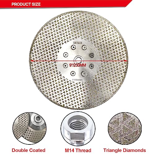 DT-DIATOOL Disco Diamantato per Taglio e Smerigliatura 2 Pezzi 230 mm x M14 Doppio Lato Elettrolitica per Piastrelle Granito Marmo Pietra