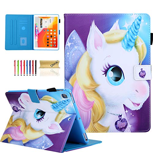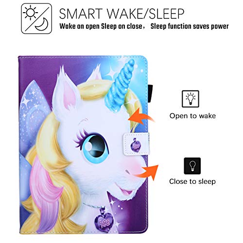 Dteck - Custodia per iPad di 6a generazione, sottile, in pelle sintetica PU, per Apple iPad da 9,7" 2018/2017, iPad Air 1 2 B_Carino unicorno