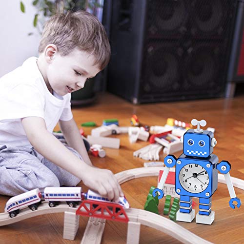 DTKID Sveglia robot, analogica per bambini, in acciaio inox, silenziosa, con occhi lampeggianti e braccio rotante, regalo per bambini, ragazze e ragazzi (blu navy)