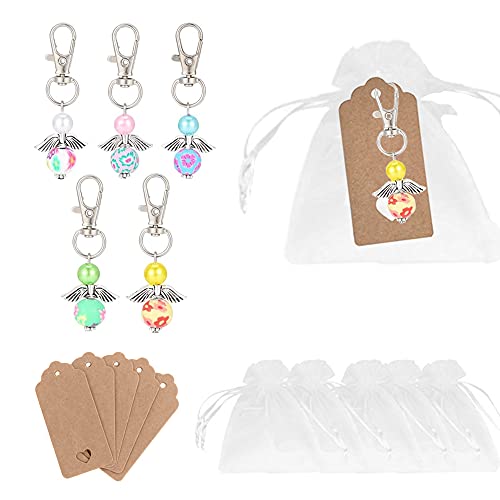 Dtoterul 20 Pezzi Portachiavi Angelo Custode Portachiavi Angelo Ciondolo a Forma di Angelo Custode Regalo Ciondolo a Forma di Angelo di Perle con Sacchetto in Organza e Biglietto in Carta Kraft