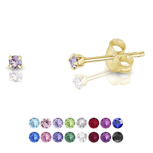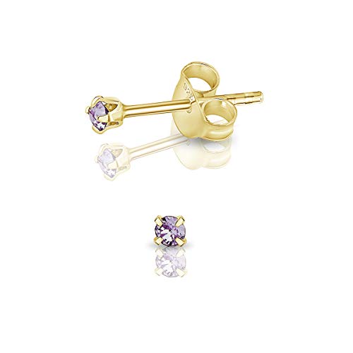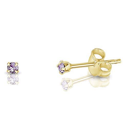 DTPsilver - Molto PICCOLI Orecchini a Perno - Argento 925 Placcato in Oro Giallo con Cristalli Swarovski® Elements Rotondi - Diametro 2 mm - Colore: Viola